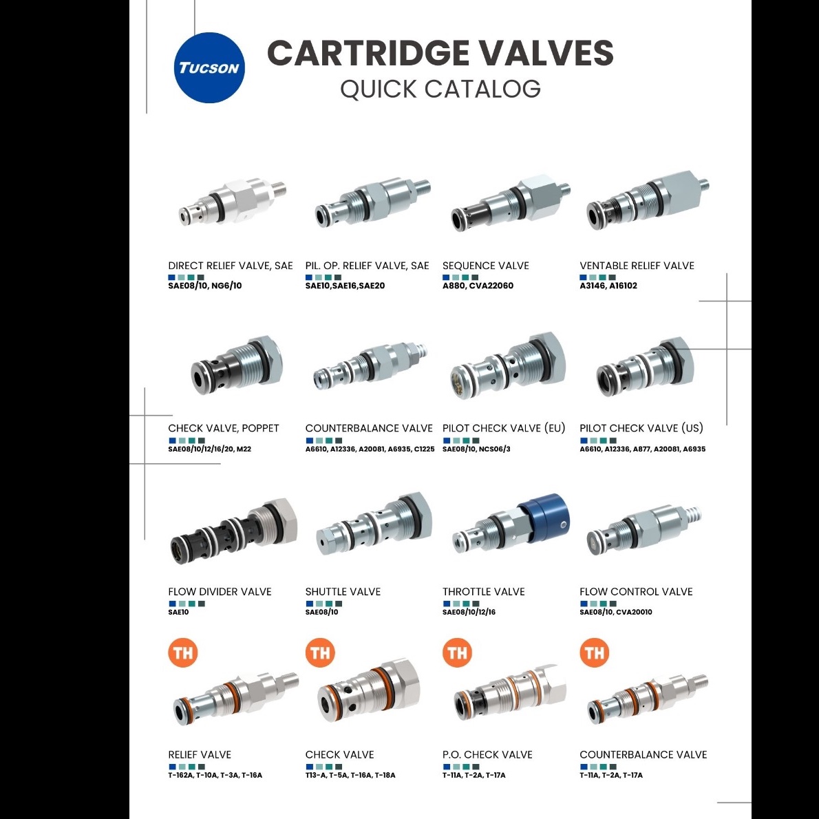 Cartridge Valves Tucson Make. Overcentre Valves , Counter Balance Valves , Relief Valves , Pressure Reducing Valves.